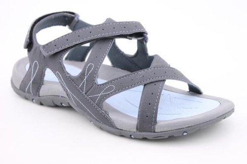 PU Nubuck upper with soft linings. Multi-strap design with hook and loop closure. Molded strap ends for easy grip. Women's-specific last for superior fit and performance. Comfort footbed with soft density EVA insert. Contoured compression molded EVA midsole. Durable MDT carbon rubber sandal outsole.