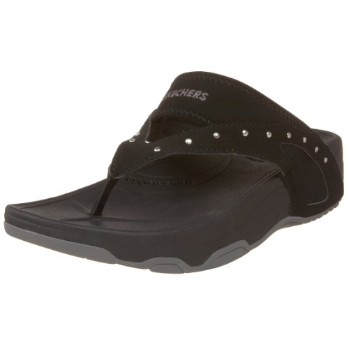 | 14 of 14 people found the following review helpful By Karen Z (Louisiana) - See all my reviews This review is from: Skechers Women's Glamgirl Thong Sandal (Apparel) I was looking for a new flip flop for summer and thought I would try these tone ups since I love my Skechers shape ups. I don't think they will work like the shape ups as far as toning,(different type of sole than shape ups) but they are quite cushiony when you walk in them. There are some issues with the tone ups I found I don't like. 1. as in the shape ups, they tend to run short so I sized up--and they only come in whole sizes. 2. I don't have long toes but the toe area seems really long(and they are long on whatever size you choose) so if you have very long toes they should be fine. 3. the thong strap that goes between the toes doesn't feel thick enough so that your toes have something extra to grab onto. Overall they are probably just an "average" shoe, but one that needs some improvements. 5 of 5 people found the following review helpful By zany_catt (Bon Temps) - See all my reviews Amazon Verified Purchase This review is from: Skechers Women's Glamgirl Thong Sandal (Apparel) I got the black ones and they are great!! They are definitely more cushiony than my "Fit-Flops". I think the silver studs make them distinctive and cute. I have a friend who is pregnant that is on her feet all day and I will be buying these for her as a "mommy" gift. The next shopping trip I take to the mall, these sandals will be on my feet for sure, they are so comfy! I would highly recommend these to anyone! 3 of 3 people found the following review helpful By Amazon Verified Purchase This review is from: Skechers Women's Glamgirl Thong Sandal (Apparel) I'm an athletic 5'9" 45 year old with no arches - flat feet - and these are the best value for this style toning thong flip flop. I purchased my second pair here on Amazon bc even with a nominal shipping cost they're at least $[...] less expensive than in most stores currently selling them and I love them that much! I usually wear a 10.5 to 11 athletic shoe, however, the 10s are truly the most comfortable for me in this style. Simply try them on and take a few steps so you can feel your truest fit. You'll know from size to size which feels best. I'll be living in these babies! |